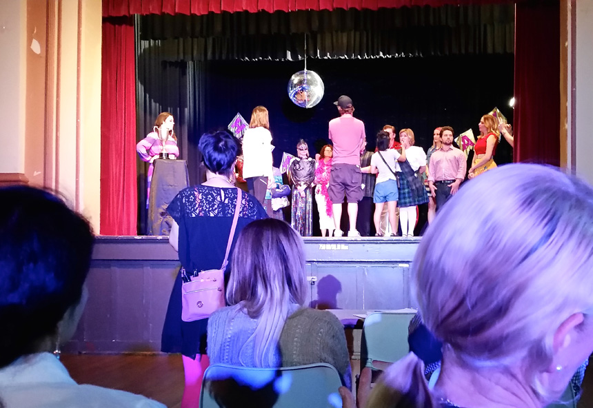 76.April 2015 Absurdist Comedy 'Ghosts' Andrew Vial plays a religious door-knocker in the comedy skit 'Ghosts' with Cathie Malone and Connie Wong. Directed by Adrian Tan.