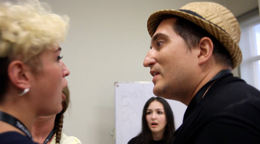 71.February 2015 Colombian Acting Improvised Holdup Participants at Andrew's acting Masterclass improvised a TV Studio holdup 'Colombian Style' using available objects only for props.
